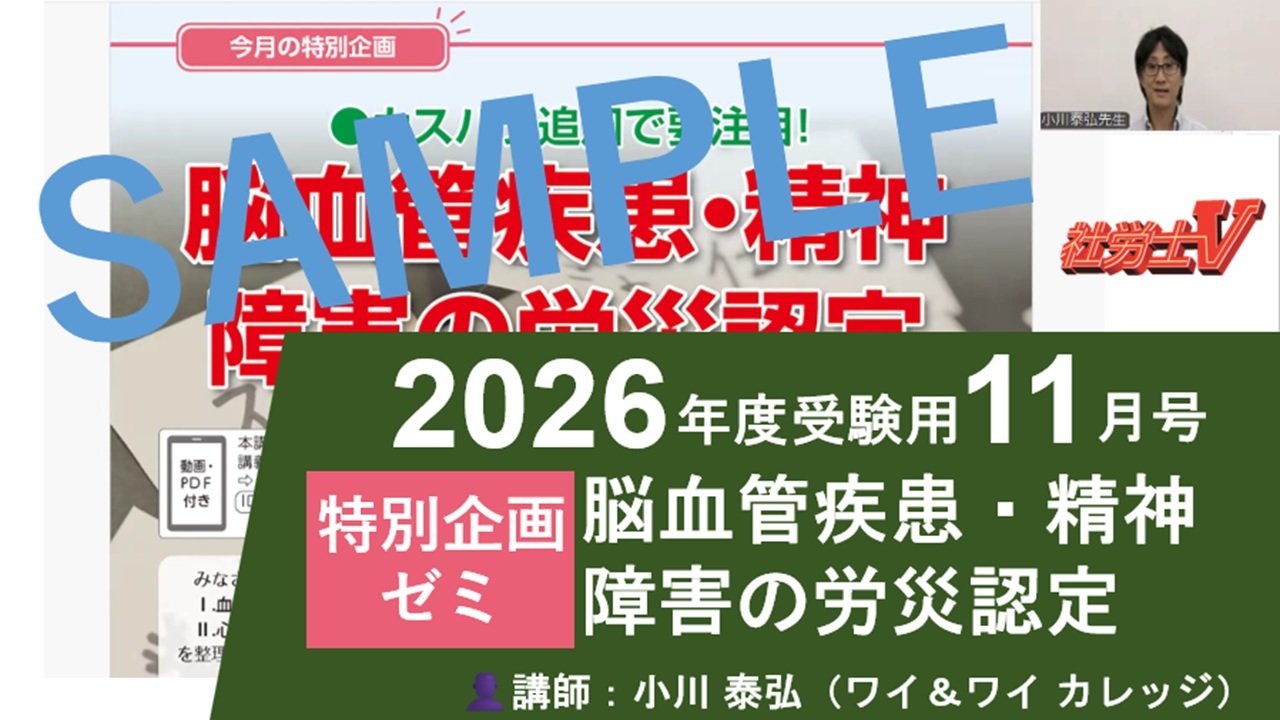 - 11月号「脳血管疾患・精神障害の労災認定」(サンプル動画)