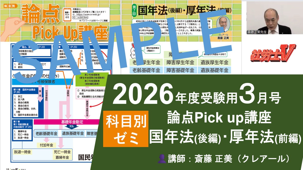 - 3月号「論点Pickup講座〈国年法(後編)・厚年法(前編)〉」(サンプル動画)