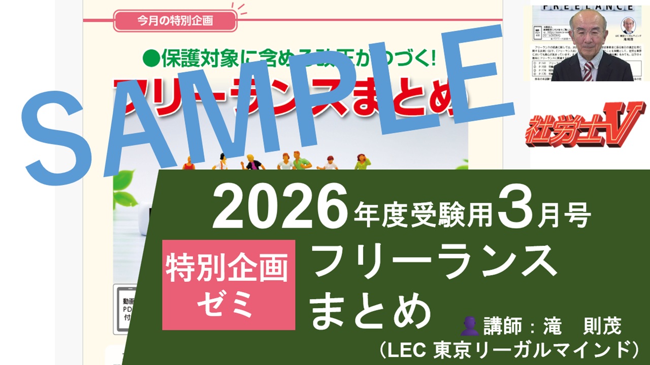 - 3月号「フリーランスまとめ」「論点Pick up講座〈国年法(後編)・厚年法(前編)〉」「改正ポイント」の動画をアップしました。