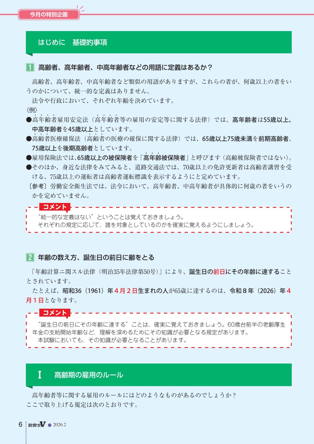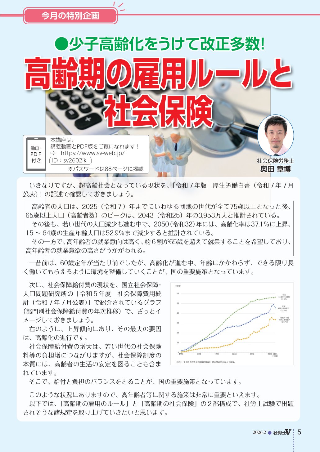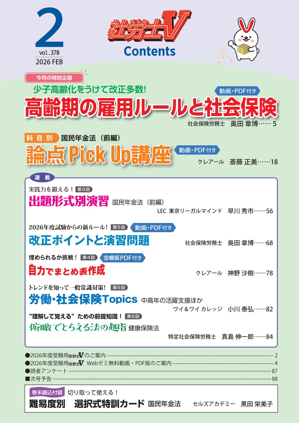 トップページ 社労士V最新号サンプル 社労士V最新号サンプル 2026年2月号 社労士V 定期購読申込 社労士V 一冊からのご購入 定期購読会員なら、過去2年分の受験用クールにおける「科目別講座」「法改正ゼミ」の動画とPDFをご覧いただけます。