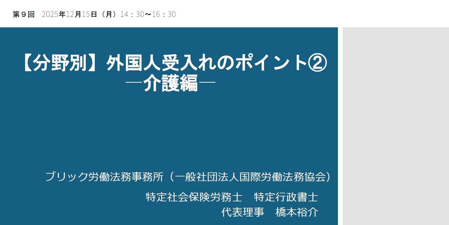 改正対応&社労士のコンサル 外国人雇用実務研究会【橋本ゼミ】第5クール 第9回
