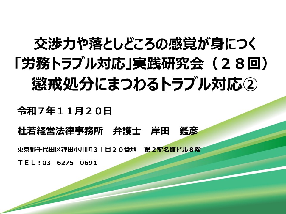 交渉力や落としどころの感覚が身につく! 『労務トラブル対応』実践研究会【岸田ゼミ】第2クール 第28回