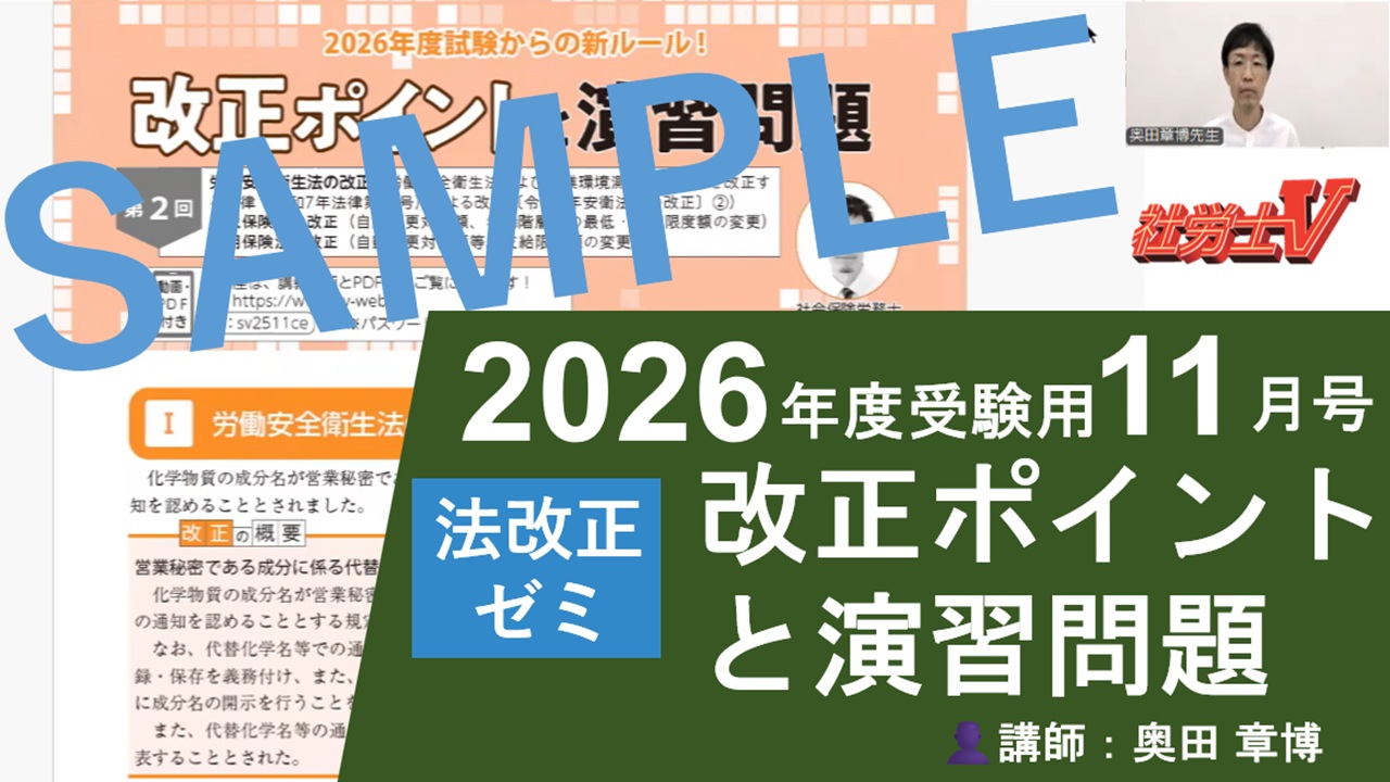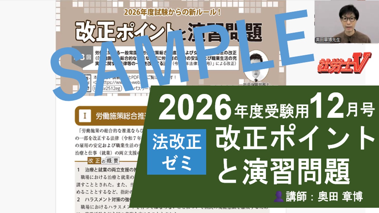 - 10月号「キーワードでわかる科目の勘所」「論点Pick up講座〈労災保険法〉」「改正ポイント」の動画をアップしました。