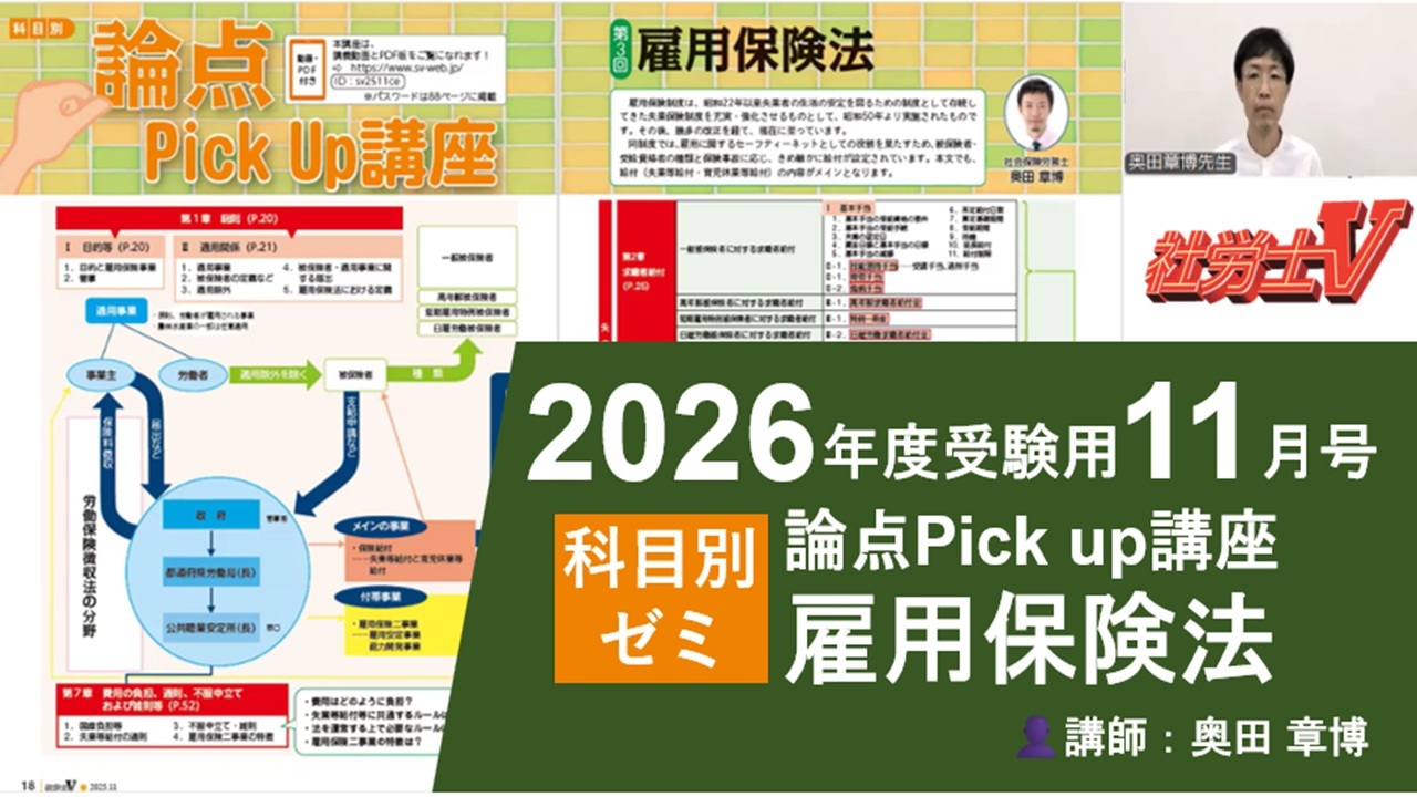 - 11月号「論点Pickup講座〈雇用保険法〉」(サンプル動画)