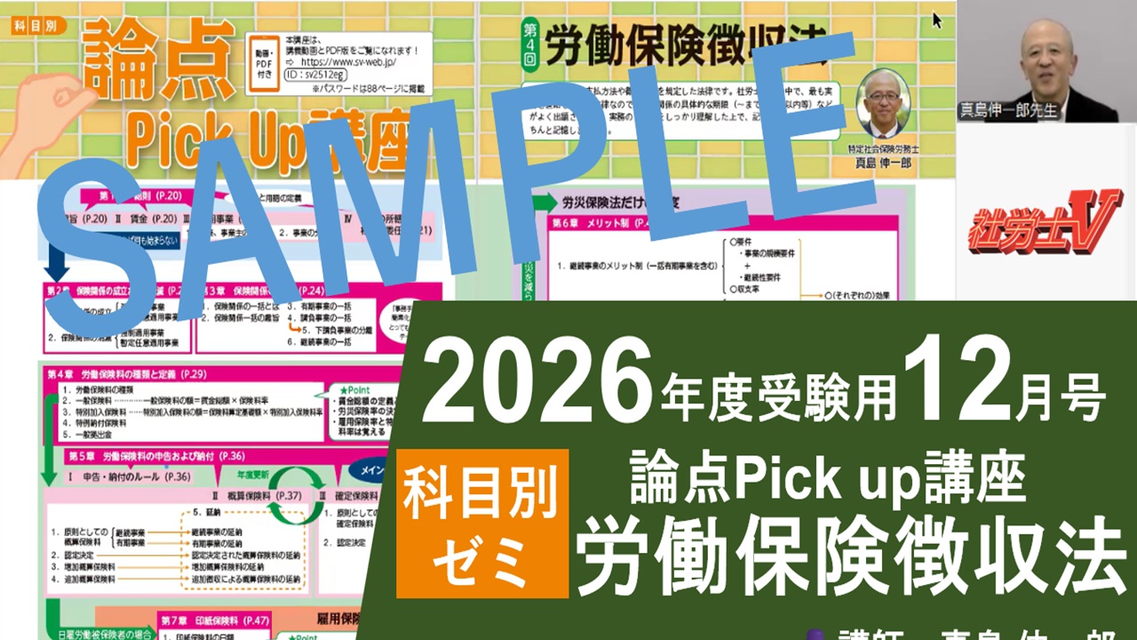 - 12月号「論点Pickup講座〈労働保険徴収法〉」(サンプル動画)