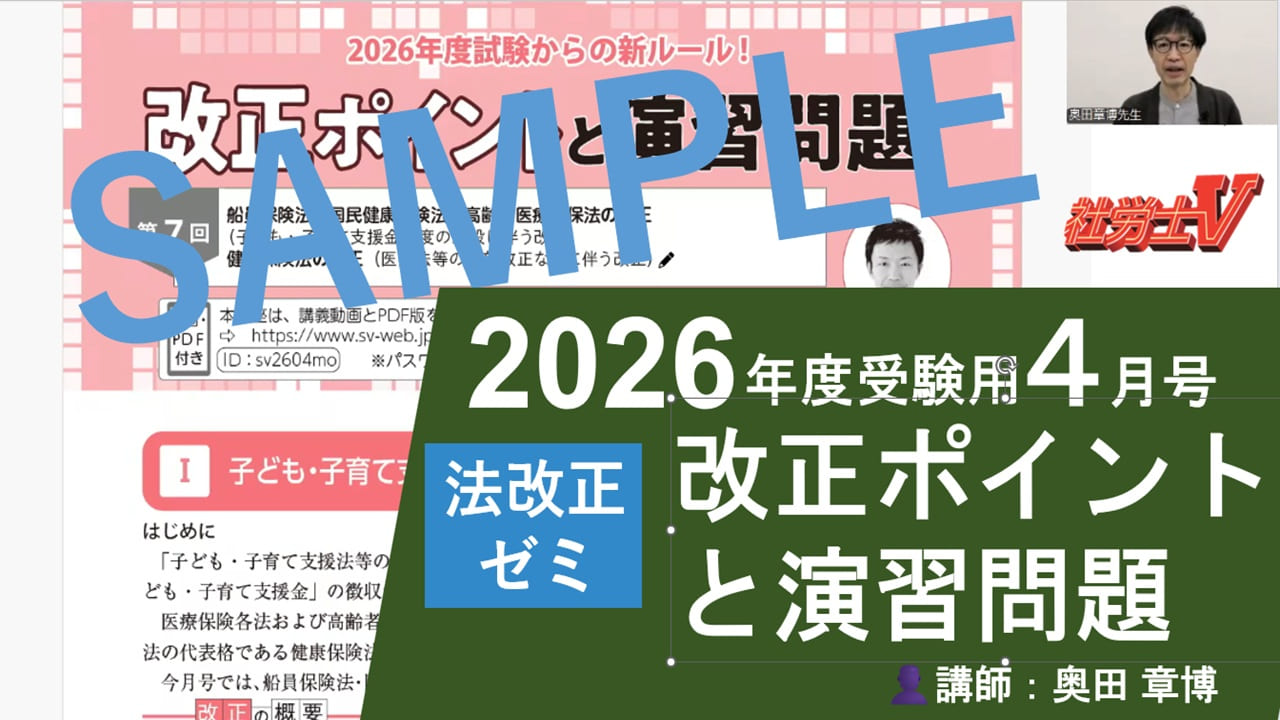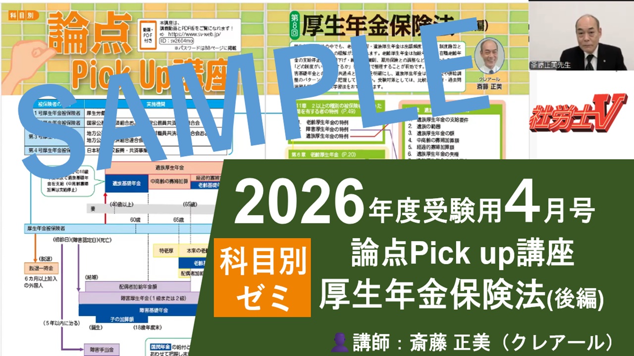 - 4月号「論点Pickup講座〈厚生年金保険法(後編)〉」(サンプル動画)