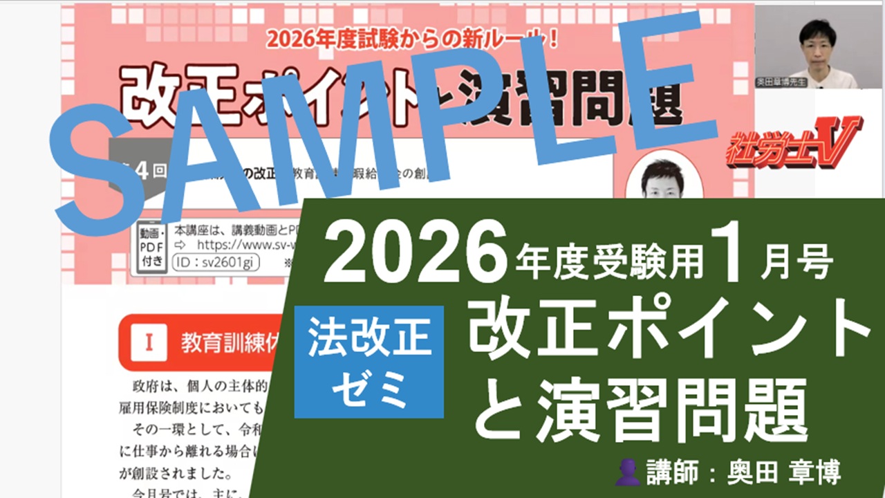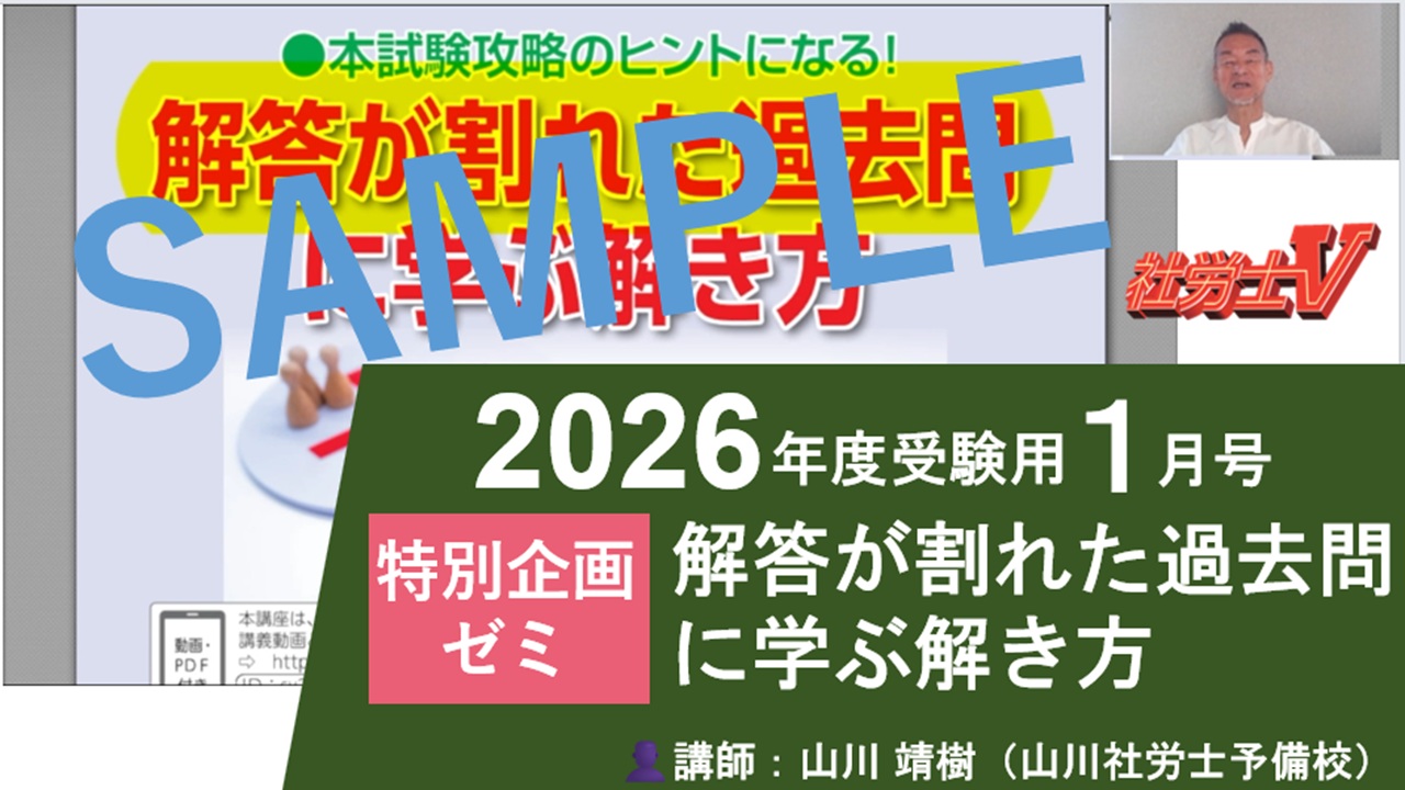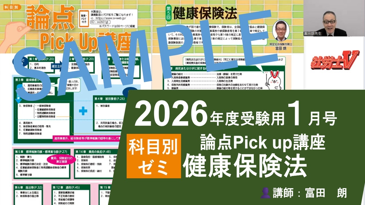 - 1月号「解答が割れた過去問に学ぶ解き方」「論点Pick up講座〈健康保険法〉」「改正ポイント」の動画をアップしました。