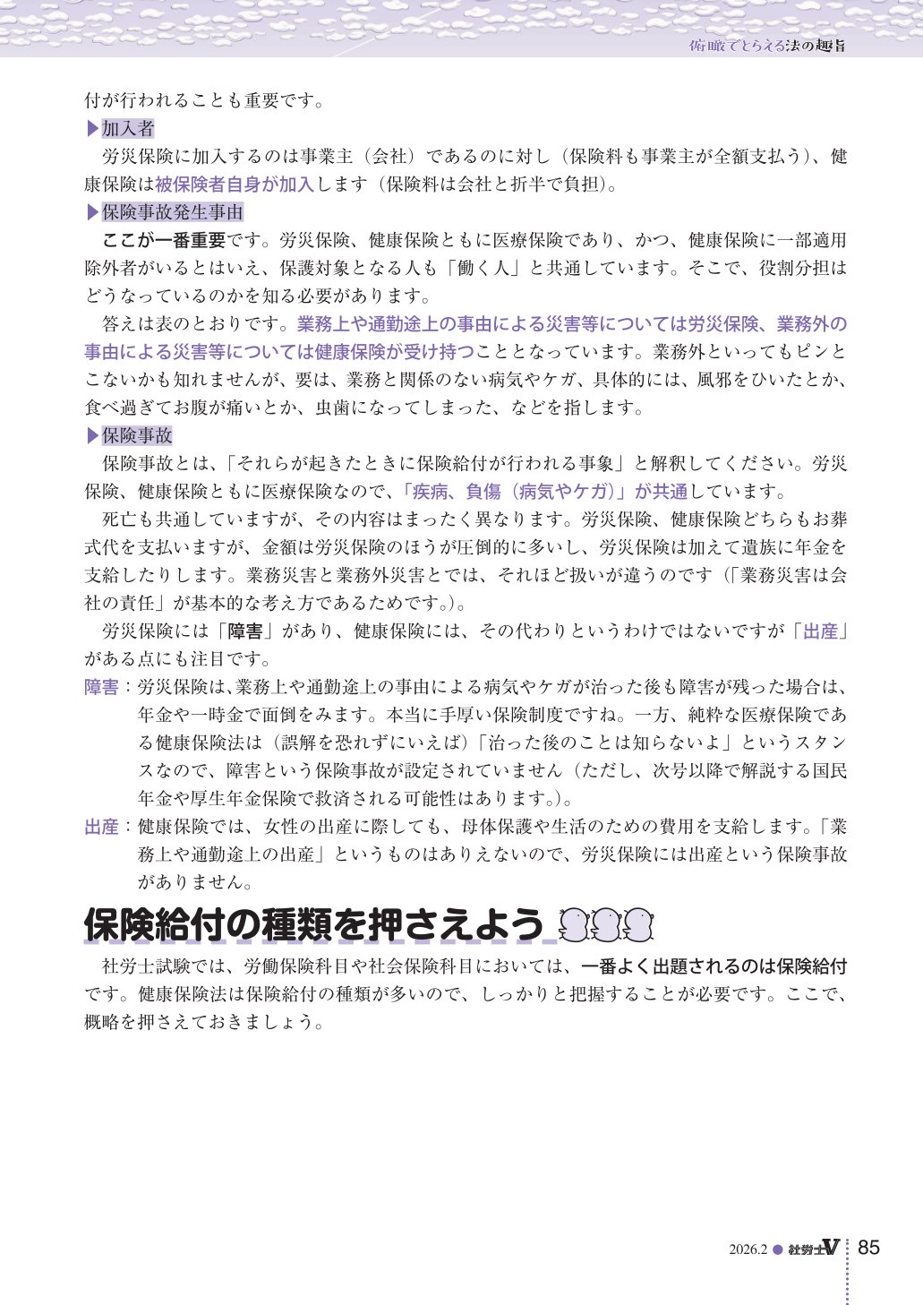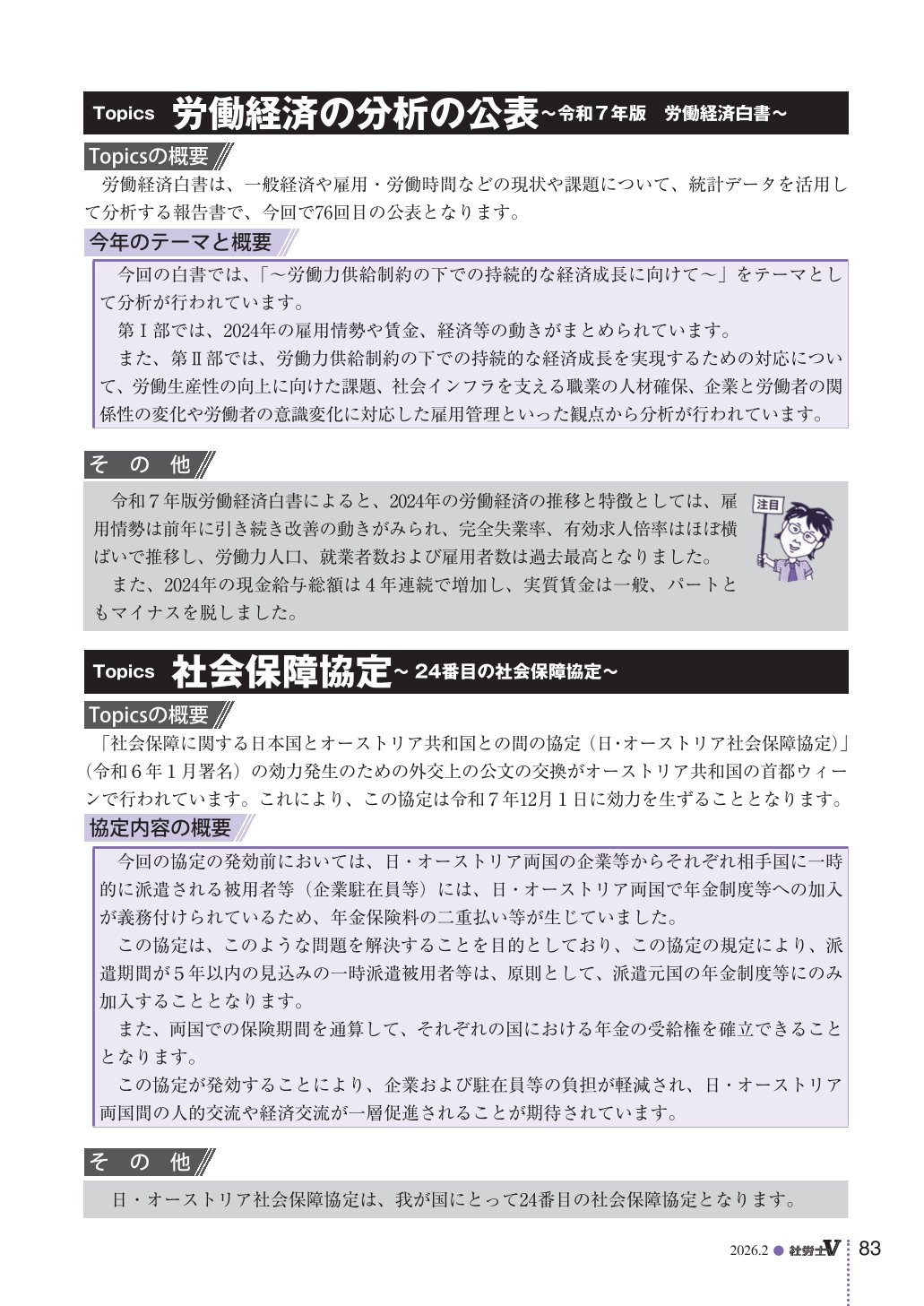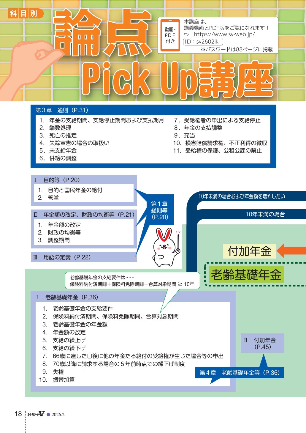 トップページ 社労士V最新号サンプル 社労士V最新号サンプル 2026年2月号 社労士V 定期購読申込 社労士V 一冊からのご購入 定期購読会員なら、過去2年分の受験用クールにおける「科目別講座」「法改正ゼミ」の動画とPDFをご覧いただけます。