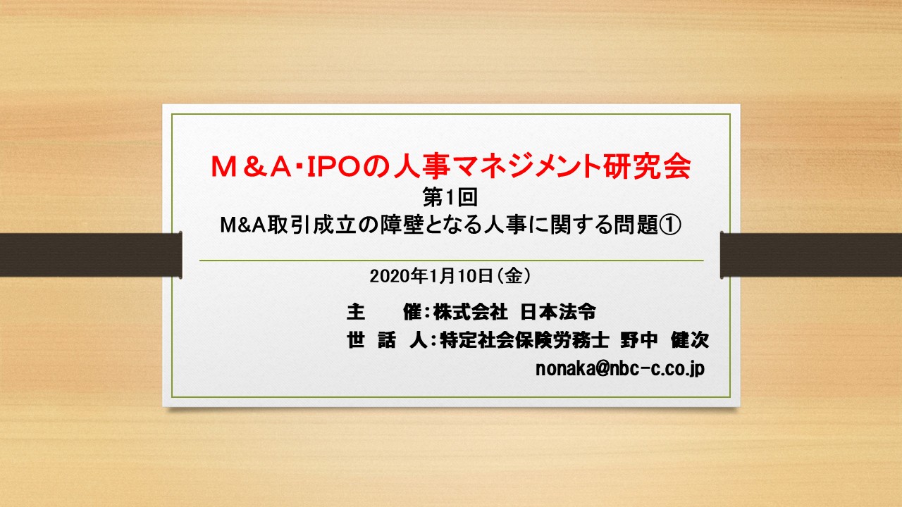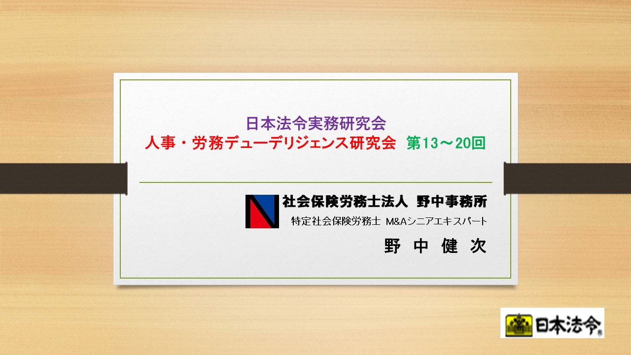 人事・労務DD(デューデリジェンス)研究会【野中ゼミ】(第13~20回)