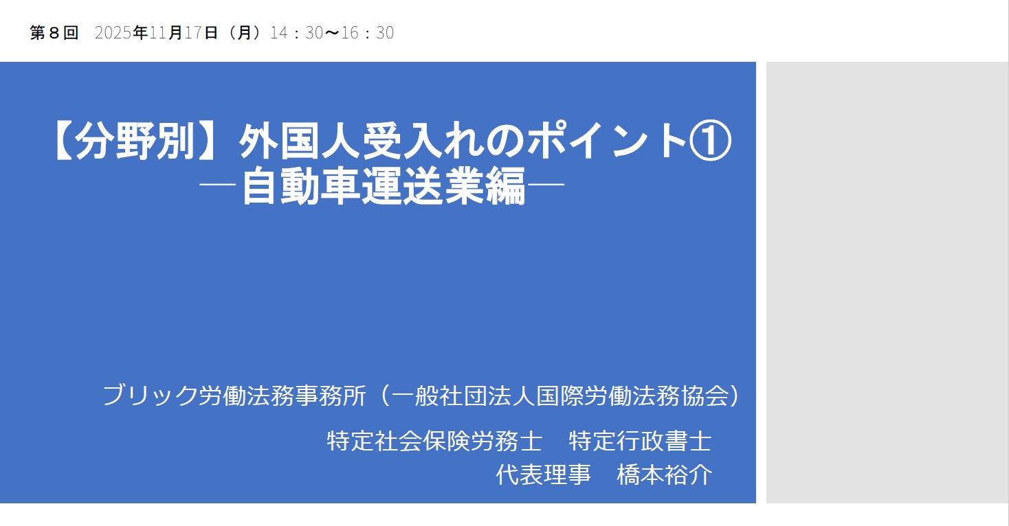 改正対応&社労士のコンサル 外国人雇用実務研究会【橋本ゼミ】第5クール 第8回