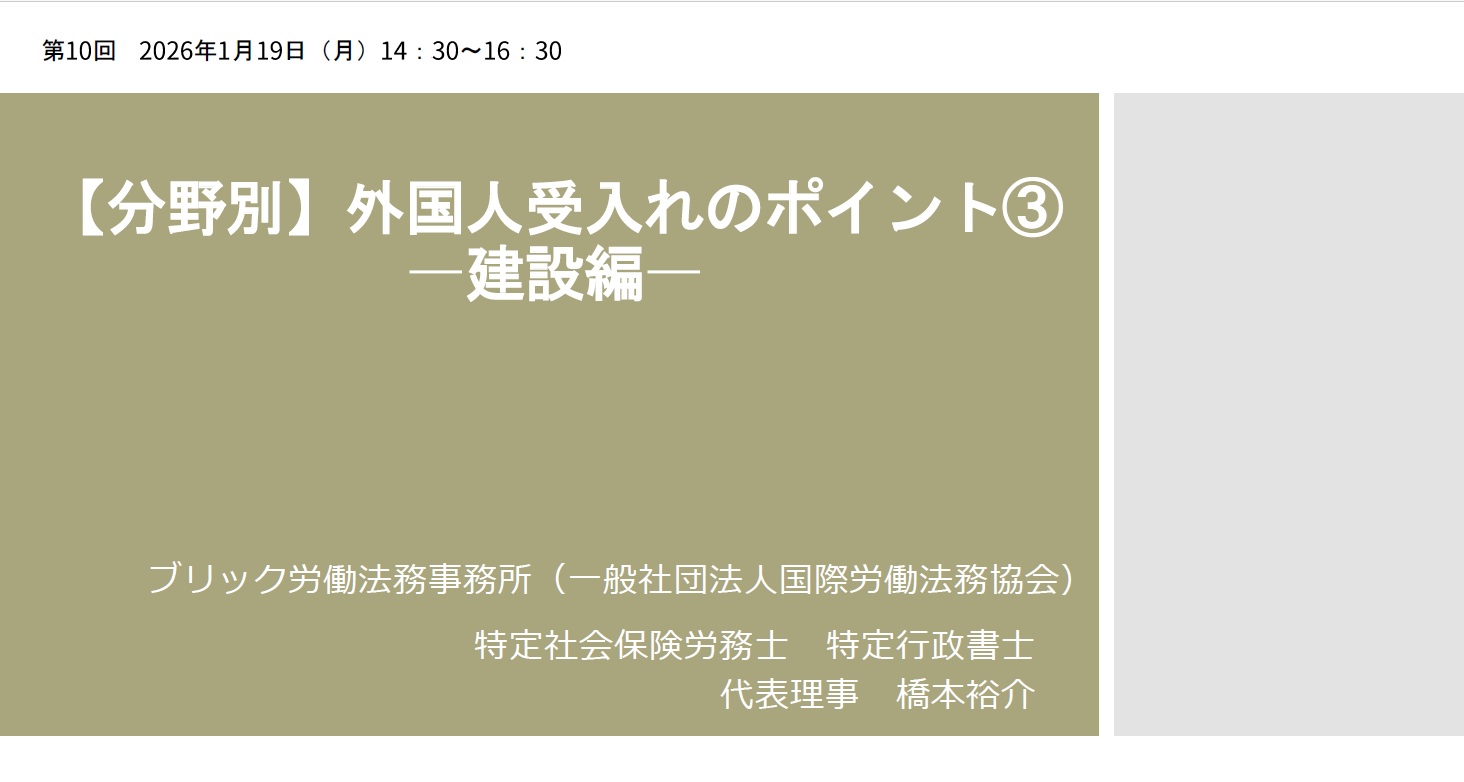 改正対応&社労士のコンサル 外国人雇用実務研究会【橋本ゼミ】第5クール 第10回