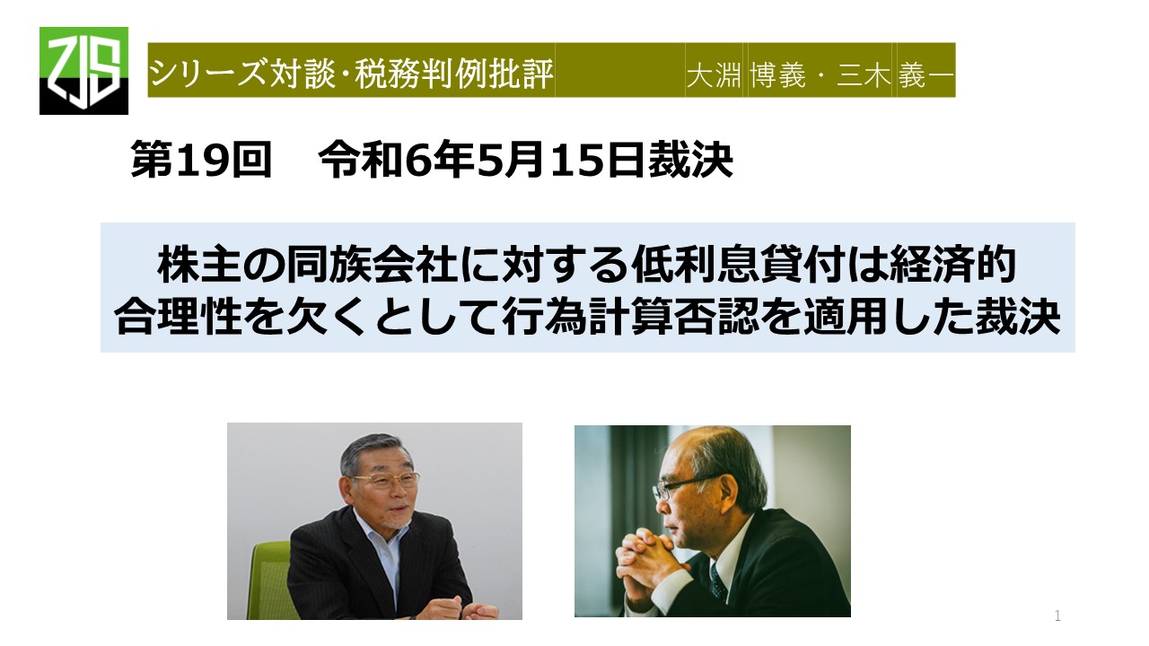 【シリーズ対談・税務判例批評】第19回 令和6年5月15日裁決 株主の同族会社に対する低利息貸付は経済的合理性を欠くとして行為計算否認を適用した裁決